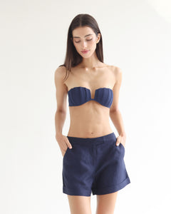 Short Curto Reto Alfaiataria- Linho Azul Marinho