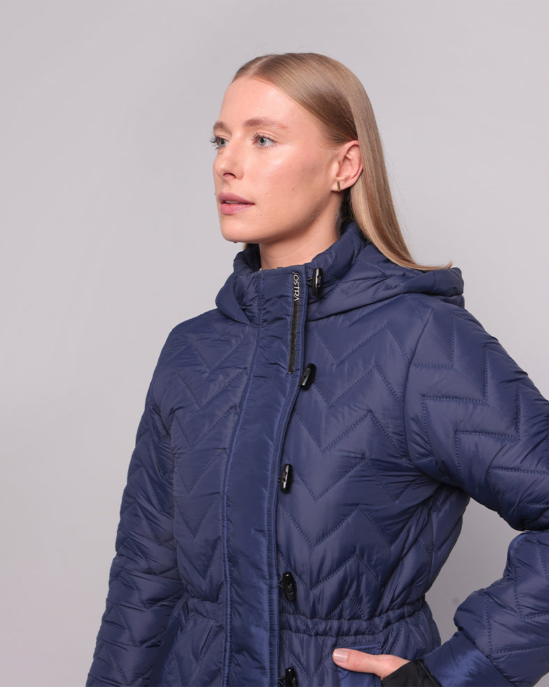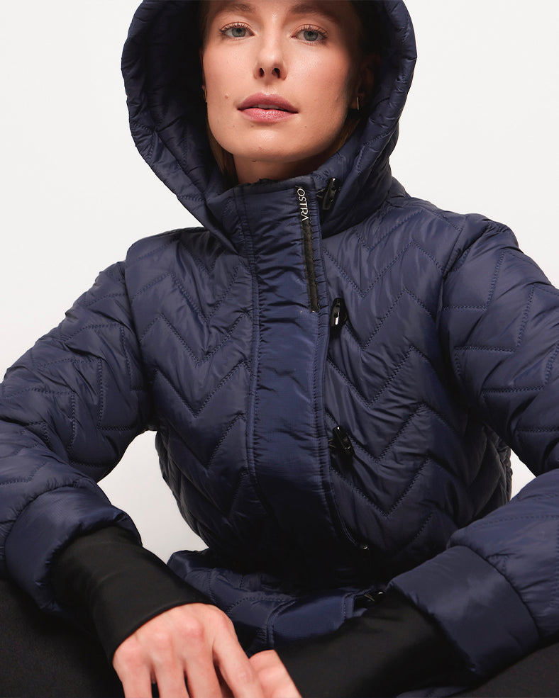 Jaqueta de nylon com preenchimento duplo. A jaqueta possui bolso interno que serve de porta-celular e bolso na parte interna do antebraço esquerdo ( ideal para guardar o ticket para o lift da montanha) .
